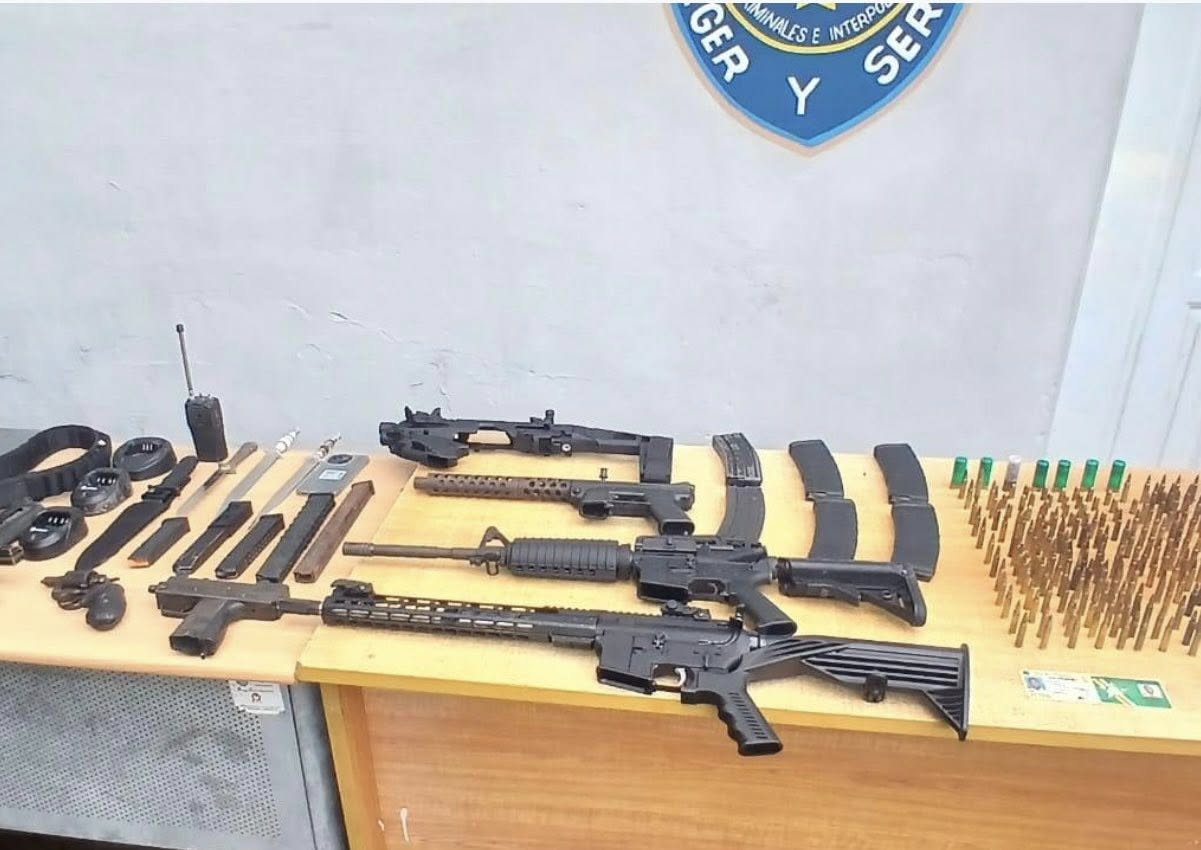 Entre los artículos incautados se encuentran dos fusiles, dos subametralladoras tipo Uzi y un revólver, además de cinco cargadores correspondientes a distintos tipos de armas.