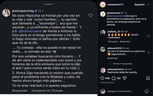 Jessica Pereira reaccionó de manera directa a las afirmaciones de Valera, cuestionando su actitud y señalando que su consejo sobre la emisora fue interpretado como un intento de perjudicarla.