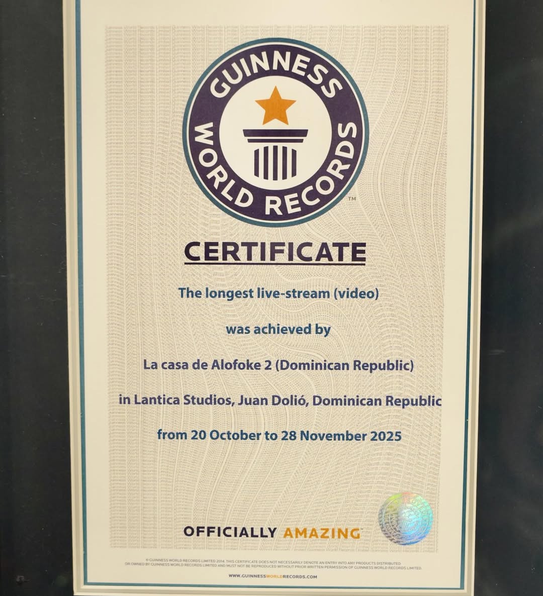 Finalmente, el documento afirmó que el récord forma parte de los archivos oficiales y continuará siendo un ejemplo verificable del impacto de las iniciativas desarrolladas por Alofoke Media Group.