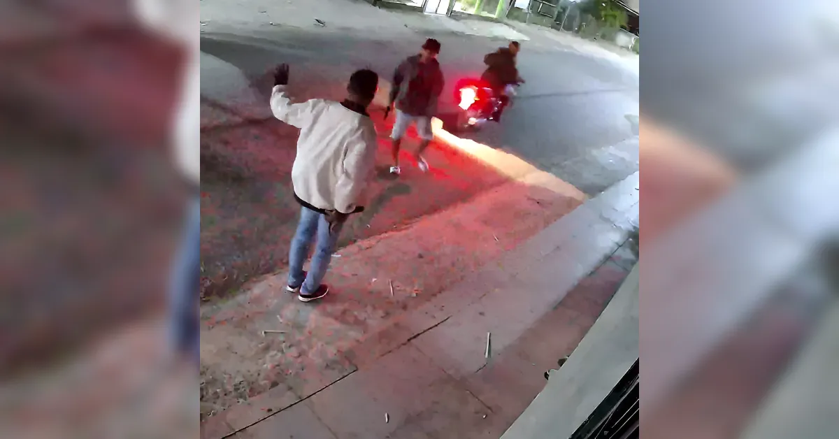 En las imágenes se aprecia cómo dos individuos en motocicleta interceptan a la víctima, mientras uno de ellos se desmonta mostrando un objeto de fuego con la intención de despojarlo de sus pertenencias.