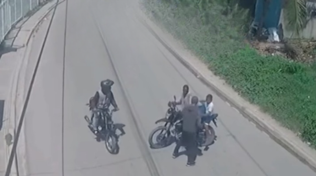 En un video que circula en redes sociales se puede apreciar cómo un hombre que iba a bordo de una motocicleta junto con un menor transitan por la vía cuando dos individuos a bordo de otra motocicleta se les atraviesan de manera intempestiva. El joven con el menor en la motocicleta intenta evadir a los perpetradores, pero estos bloquean efectivamente su paso en la carretera.