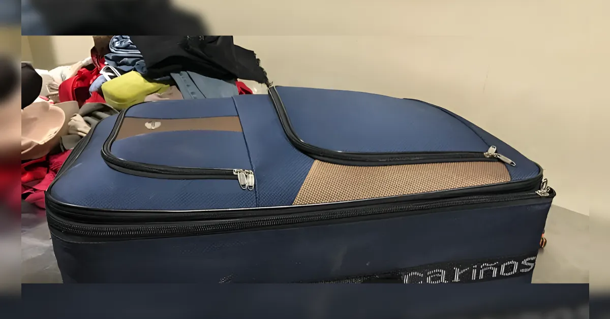 Al examinar el equipaje, los equipos localizaron láminas camufladas en dos maletas, según el reporte oficial, complementando verificaciones aplicadas durante la revisión especializada.