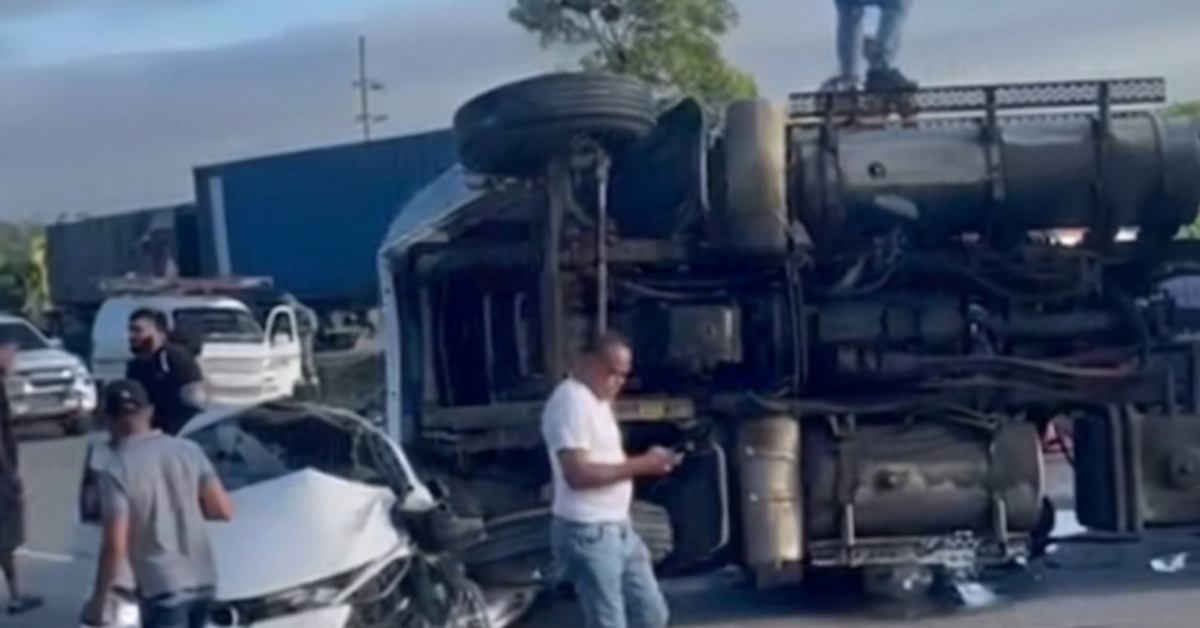 Aparatoso suceso vial entre varios vehiculos en autopista Duarte