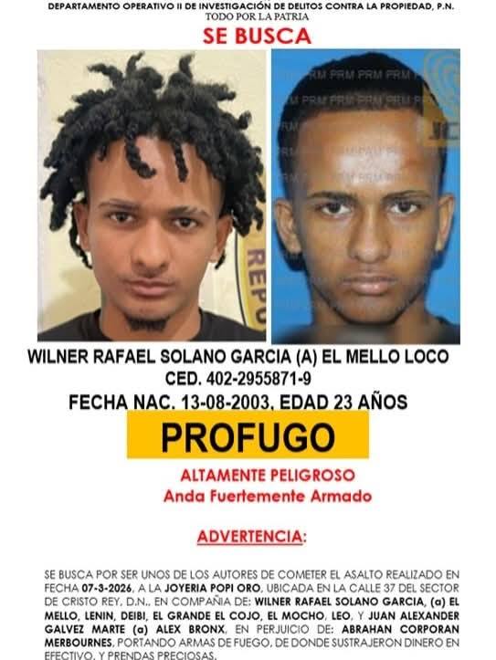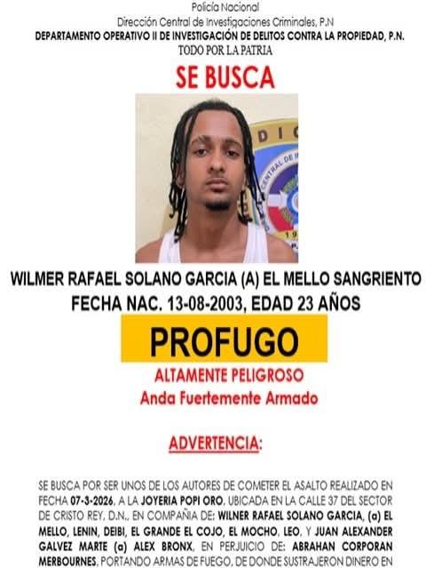 Según informaciones preliminares, el caso está relacionado con un asalto registrado en la joyería Popí Oro, establecimiento comercial ubicado en el sector Cristo Rey, en el Distrito Nacional.