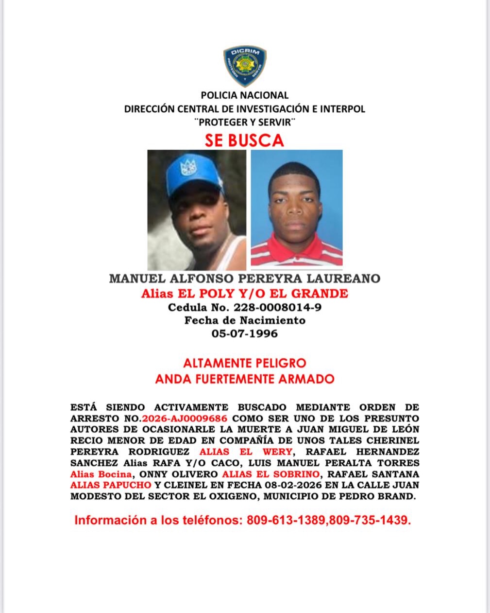 Tolentino exigió que las autoridades difundan la alerta de búsqueda mostrando al agente con su uniforme oficial y no vestido de civil, como ha ocurrido en otros casos según afirmó el comunicador.