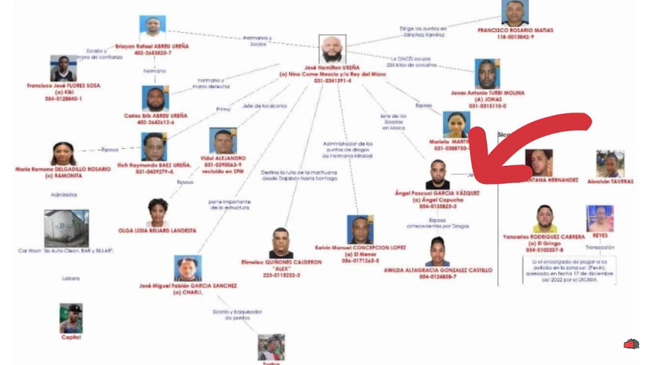 Según las autoridades, el detenido estaría vinculado a una estructura delictiva liderada por José Hamilton Ureña, conocido como “Niño Come Mezcla”, con presencia en varias provincias del Cibao y presuntamente mano derecha del mismo Ángel Capucha.